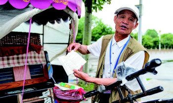 “坐车吗,老师?”“坐三轮去‘三孔’感受一下吗?”……8点钟不到,孙光喜来到曲阜市游客中心北门西侧的人力客运三轮车专用停放区,身旁的同行开始招揽游客,此时的孙光喜却格格不入,十分安静。只见他边将凉席铺在车座上,边从车筐中拿出了一本《论语》准备开始细读。“休息的时候,看看论语复习复习。”