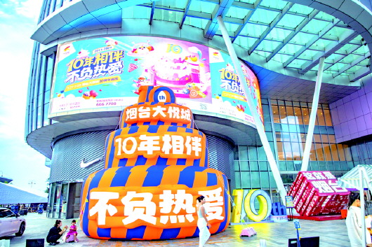 ▼烟台大悦城10周年巨型“生日蛋糕”。