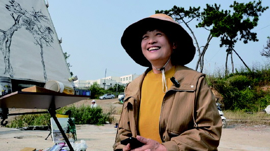 黑松、高山、大海......李宝春一笔一划描绘着面前的景色,她热爱山水,喜欢把用画笔勾勒山水背后的文化印记。采访当天,李宝春正和银滩美术协会的朋友们一起在当地海边写生。她是一名画家,退休后来到银滩找到了绘画新乐趣,有人带头、大家一起交流创作,自己不仅突破了瓶颈,还有了自己的创作风格。“我喜欢银滩,喜欢这里的山山水水,喜欢这里的人文魅力,以后养老就在这里了。”