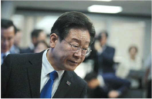 4月11日,在韩国首尔,共同民主党党首李在明出席记者会。 新华/美联