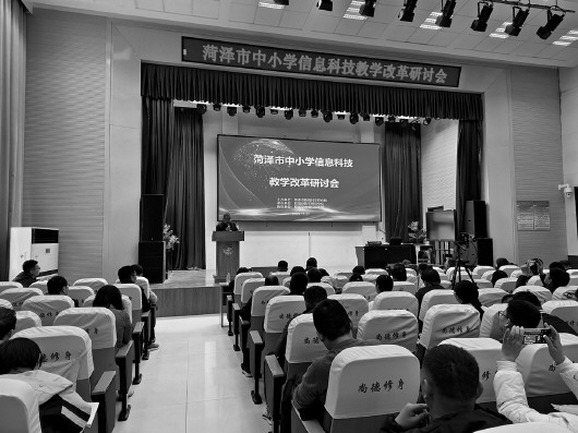 为落实义务教育信息科技新课标,推进菏泽市信息科技课堂教学改革,推动项目式教学落地实施,提升信息科技教师的课程理念和教学技能,11月22日至23日,菏泽市中小学信息科技教学改革研讨会在郓城县南城中学报告厅举行。