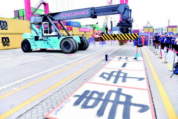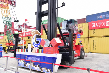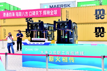 “匠心助航”项目呈现集装箱叉车司机操作场景,考验操作人员“稳、准、轻”的过硬技能,用匠心绝技确保安全、提高效率、提升服务、事争一流。