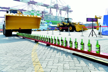 驾驶装载机开啤酒,一分钟能开30瓶。这项绝活的难点,就是操作者在距离啤酒瓶四米以外的驾驶室内,要达到人车合一的境界,才能准确地用开瓶器准确地将瓶盖开启。山东港口青岛港前港公司郭凯首创的吉尼斯世界纪录项目——装载机开啤酒。这项纪录是郭凯2016年在北京创造的,1分钟开启30瓶啤酒的记录,至今没有被打破。