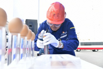 一手持高速角磨机,一手小心翼翼地拿着鸡蛋,双眼紧盯着蛋壳上早已精细画好的标线。随着角磨机的嗡嗡作响,双手不断配合,沿着标线进行环形切割,每一次转动都凝聚着青年职工对技艺的极致追求。鸡蛋外壳厚度仅有0.5毫米,角质层更是不足0.1毫米,而他们的目标就是在这薄如蝉翼的外壳上施展技艺,确保角质层不破损、蛋液不流出。