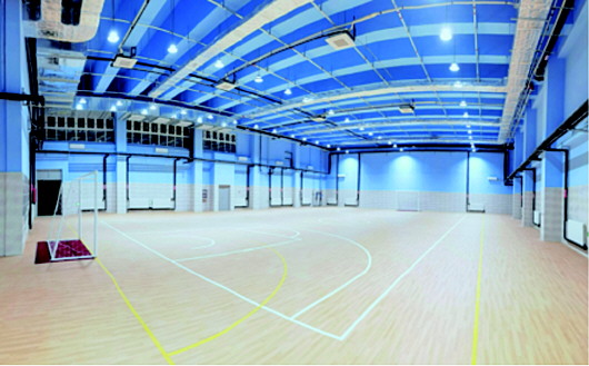 活动场贯穿地下两层层高,占地面积约1360平。目前是学校的多功能活动场,配备了可移动的座椅、篮球架等设施。平时可作为羽毛球活动场、篮球场,也可作为中型会议场地来用。这种多维立体利用模式,极大扩展了师生的活动空间和场馆功能。