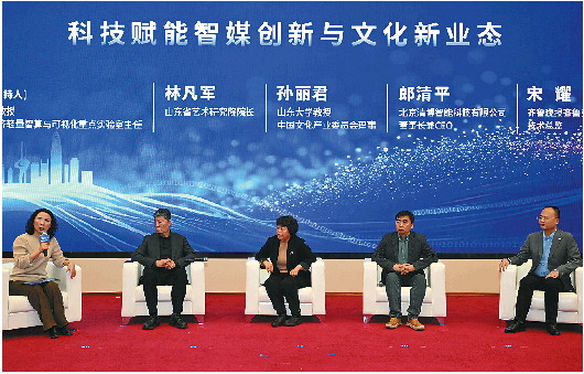 11月28日下午,“深改在山东——高质量发展调研行”暨“智驱未来 拥抱变革”齐鲁壹点十周年战略发布活动举行。活动邀请了山东省艺术研究院院长林凡军,山东大学教授、中国文化产业委员会理事孙丽君,北京清博智能科技有限公司董事长兼CEO郎清平,齐鲁晚报·齐鲁壹点副总编辑、技术总监宋耀。本次圆桌论坛由山东财经大学教授、山东省数字经济轻量智算与可视化重点实验室主任刘慧主持。会上,各位嘉宾围绕科技赋能智媒创新与文化新业态这一话题展开探讨。