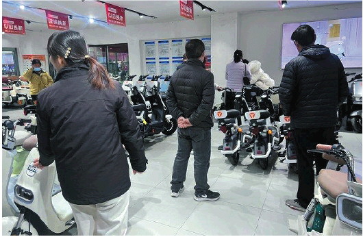 11月30日上午,记者在济南天桥区的黄台电动车批发市场看到,各品牌的电动自行车门店均摆放着多种款式的待售车辆,不少消费者正在选购。
