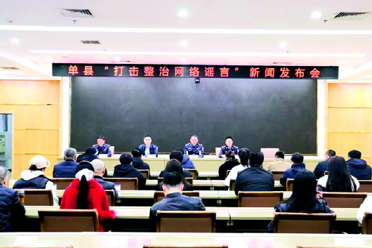 近日,单县召开“打击整治网络谣言和网络暴力”专项行动新闻发布会。受副县长、县公安局党委书记、局长张成春同志委托,县公安局党委副书记、政委吴福珍代表单县公安局向社会各界和广大群众报告“打击整治网络谣言和网络暴力”专项行动工作开展情况,县委宣传部副部长徐曦,县公安局党委副书记、副局长瞿森,齐鲁晚报、山东法制报、中国山东网、菏泽电视台、菏泽日报、百度、腾讯、网易及县融媒体中心的记者和网民代表参加新闻发布会。