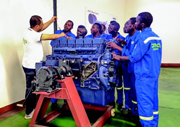 山东四方技师学院与德元集团合作共建的赞比亚双德学院的车辆维修实训课。