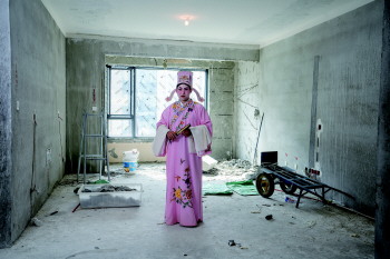 作为一支没有固定收入来源的乡村剧团,演员们的演出和收入来源已完全分离,戏里是文化传承,戏外是生活。通过选取剧团成员拍摄日常工作生活环境中的带妆肖像照,以反映一个乡村剧团的文化坚守和传承,唤醒人们对民间戏曲文化的关注。