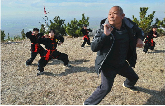也许,老翟的心里有着另一个梦想,当年老师傅教给他的传统八极拳,经由他的传承也能够像山上的柏树那样绿树成荫。