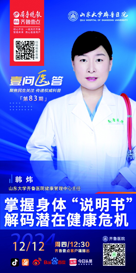 健康直播栏目《壹问医答》由齐鲁晚报·齐鲁壹点与山东大学齐鲁医院联合播出,每周四12:30直播。