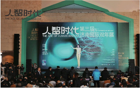 12月16日,由山东省人民政府主办,中共山东省委宣传部、山东省文化和旅游厅、济南市人民政府共同承办的“人智时代——第三届济南国际双年展”在山东美术馆开幕。由齐鲁晚报·齐鲁壹点打造的3D超写实数字人、齐鲁数字文化推荐官“鲁韵”担纲开幕式主持,与各界人士共同开启“人智时代”的艺术盛宴。展览坚持“中国气质、国际视野”的办展理念,选定来自21个国家和地区,215位艺术家的291件(套)作品参展,涵盖绘画、雕塑、新媒体艺术等多元类型。展期将持续至2025年4月。 记者 孙远明 王鑫 摄影报道