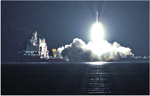 ▲12月19日18时18分,在日照近海海域,天启星座33星、34星、35星、36星由谷神星一号海射型遥四运载火箭发射升空。