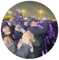 ◤海滩上,众人一睹卫星升空。