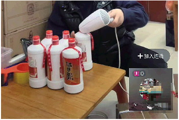 一直播间内,博主正在将换盖后的白酒重新封装。 视频截图