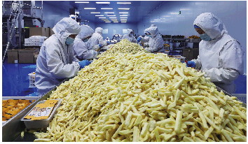 尊海食品集团有限公司位于沂源县大张庄镇,这是一家集农业种植、加工、销售于一体的农产品深加工企业。生产的冻干产品除了国内销售,还出口到了日本、韩国等地。该公司车间里,到处一派忙碌景象,身穿白色隔离衣的工人正在加工各种冻干水果,生产线上的产品经过挑选、打包后封装入库,等待运输。偌大的展厅里,冻干水果、冻干蔬菜等各种产品整齐地摆放着。据尊海食品经理耿瑞福介绍,公司年加工鲜果1000余吨,苹果占比能达到30%,依托“企业+合作社+农户”的模式,公司与周边村庄签订保底收购协议,保证了当地果品销售和果农收益。