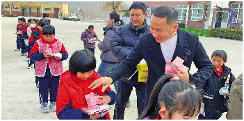 礼物发放完毕,孩子们怀中都塞满了。黄巢小学校长王云一再向爱心人士表达着感谢。“学校覆盖周边7个村,孩子们家距离学校最远的有七八里路,有了围巾和手套,他们不会感觉冷了。”王云说,“更重要的是,爱心人士还给孩子们送来了精神上的温暖,让他们感受到爱心的力量。”