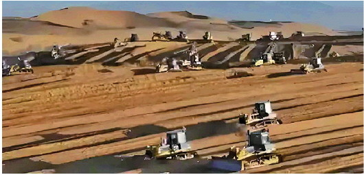 齐鲁晚报·齐鲁壹点记者搜索相关视频发现,该话题视频大多配着这样的画面:十几台推土机,正在黄土高原上如火如荼地忙碌着,大量黄土被铲起、推平;文案配有“打造新时代的‘塞上江南’”等字眼。此外,这些视频讲解内容清一色为个人讲述以及一些历史影像资料,没有任何与之相关的官方文件或内容。