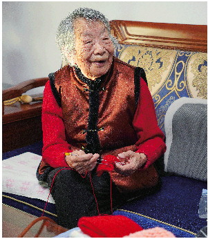 12月26日下午,坐在家中的沙发上,彭奶奶拿起毛线,又熟练地织起来。95岁的彭奶奶眼不花、手不抖,毛衣针在她手中灵活地跳跃,就这样一针针织成温暖的围巾。