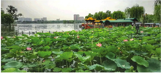 大明湖历史上又叫莲子湖,自古以来青莲满湖。据唐代段成式《酉阳杂俎》记载,至少在三国时期,大明湖一带就已开始遍植荷花菱藕。明代,大明湖植莲水域已占整个湖面之半。清代诗坛领袖王士祯《忆明湖》说:“烟峦浓澹山千叠,荷芰扶疏水半城。”