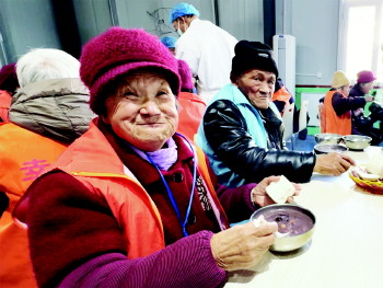 83岁老人杨宋氏每天都会来幸福食堂吃午饭,今天的腊八粥,喝得也是心满意足,“有这么好的食堂怎么能不来,吃饱还能吃好,来了坐下就吃,照顾得也周到,这里的环境也好。”杨宋氏说。