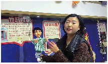 李秀平展示她新研制的木偶机器人。