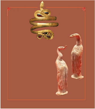 中国国家博物馆展出的金质蛇形手镯(希腊国家考古博物馆藏)。