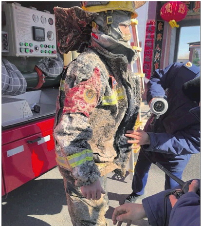 “当时注意力都在灭火上,也没考虑太多,等从屋顶上灭完火下来后,才发现战斗服都冻住了,对讲机、头盔上都结了一层冰。”李超说,当时气温-15℃左右,风力也很强,“尽管我们防护措施很到位,但依旧觉得全身都冻僵了,水枪喷出的水打湿了全身,结了冰的战斗服牢牢地冻在身上,连行走都很困难。”李超说,由于拉链被冻住,队友们只能用水枪帮自己把衣服外层的冰块敲碎,才慢慢脱下了这套“冰铠甲”。