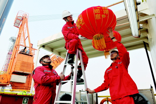 夜幕下,钻机轰鸣、海浪轻抚。在这个美好的时刻,他们用忠诚和坚守为祖国守岁、为家人祈福,更为了让“能源的饭碗端得更牢”。