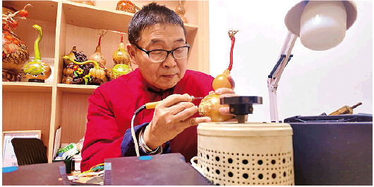 近年来,为了更好地传承烙画技艺,臧建还在作品中融入很多现代元素,以吸引更多年轻人关注烙画。同时,他还多次走进校园、社区开展烙画宣传,向年轻人免费传授烙画技艺。“在我看来,每一个葫芦都是‘可塑之才’,只有不停地钻研、创新和尝试,才能制作出让人喜爱的作品。我也希望让更多的人了解和学习这门传统技艺,这样才能让传统老手艺真正在新时代焕发勃勃生机。”
