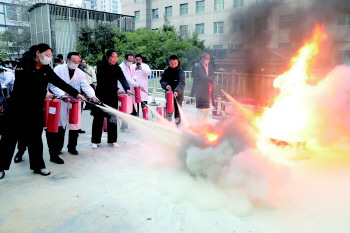 日前,金乡县人民医院组织全院1800余名职工,200余名保安、保洁、膳食等人员开展灭火器实操培训与消防演练,增强广大职工灭火器规范使用操作技能,实现消防安全教育全覆盖。