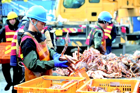 从山东港口烟台港获悉,近日,一艘来自俄罗斯的“比卡”号货轮停靠在山东港口烟台港芝罘湾港区42号泊位,为翘首以盼的海鲜爱好者们带来了总计52.158吨的鲜活海产,包括46.079吨帝王蟹与6.079吨雪蟹。这批海鲜不仅丰富了本地乃至周边地区的海鲜市场,通关后还将快速运至全国各地,让更多消费者大快朵颐、品尝到鲜美的滋味。
