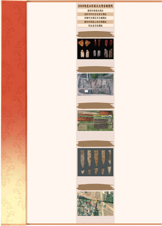 2月20日,2024年度山东省五大考古新发现名单揭晓,分别为:莱西市西老庄遗址、临沂市河东区毛官庄遗址、济南市长清区齐长城遗址、滕州市母祖山采石场遗址和阳谷县东张遗址。