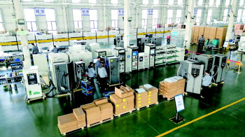 在充电桩车间,记者见到了友豪能源科技的技术团队,充电桩车间主任赵传功向记者展示了公司最新研发的充电桩产品。“我们的充电桩采用先进的电子技术和智能控制策略,确保充电过程高效稳定。”赵传功介绍,产品还支持多种支付方式,用户可以通过手机APP轻松实现预约充电和自动结算。