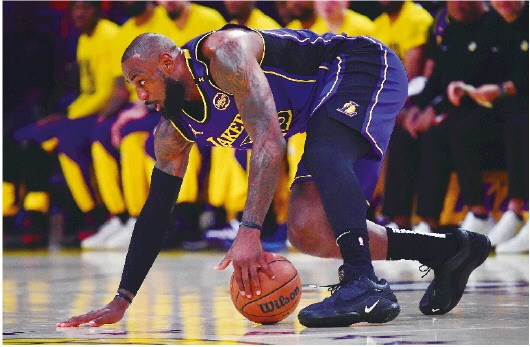 詹姆斯在湖人与独行侠队的比赛中。 Ic photo供图