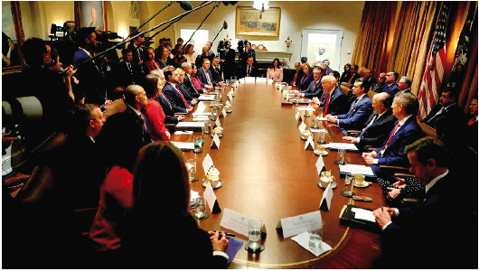 美国总统特朗普2月26日举行其第二任期内首次内阁会议。