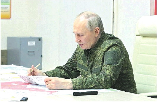 俄罗斯总统普京12日在库尔斯克地区一个指挥中心出席会议。 新华社发