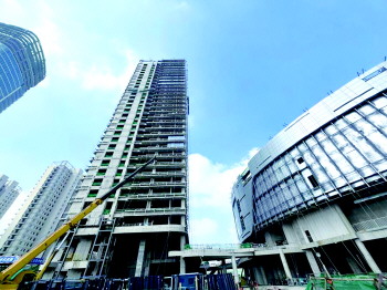 “目前,酒店的外幕墙工程、室内安装工程正在施工,商业综合体的室内安装工程也已经基本完成。”放眼望去,30层的酒店大楼高耸挺立,在混凝土与钢构的碰撞声中,正将图纸化为现实。王伟介绍,整个东方五彩城项目占地105亩,总投资23.8亿元,坐拥日照中央活力区核心地段,毗邻日照大学城。其中,一期投资13.8亿元,建筑面积17.5万平方米,包括奥特莱斯购物MALL商业综合体和酒店集群体。