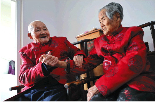 董祥孟的老伴路良风也已98岁高龄,两人结婚80年从没红过脸。说起不吵架的秘诀,他说是包容和谦让。如今老伴只能坐轮椅,他每天推着老伴在屋内转转,并给她做一些日常推拿,偶尔还会推着老伴在小区散步。