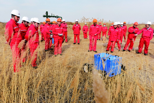近日,胜利油田河口采油厂召开职工技术创新成果推广观摩会,技能大师孙文海团队研发的“自动除草机”在罗9-13井、义5-27井现场实操亮相,一小时能除草200平方米,工作效率是人工的10倍。