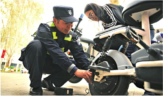 从那以后,学生们都知道了校园里有个会修车的保安师傅。小到自行车电动车,大到摩托车汽车,轮胎充气、调刹车、换链条、组装新车等等,大大小小的毛病他都能又快又好地解决。久而久之,来找他修车的同学越来越多,学校里的教职工也慕名而来。刘新锋回忆了一下,每年他为师生义务修车大约有100多次。