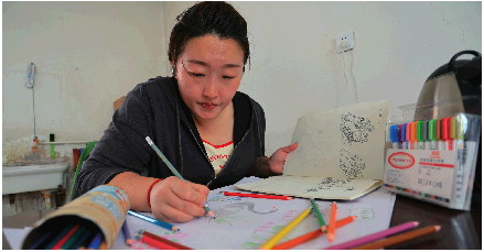为了提高绘画水平,赵亮买了专门的书籍,一有时间就学着画。
