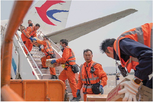 ▲3月30日下午,云南紧急调运衣服、药品、方便面、帐篷等生活及救援物资共约7.3吨,包机从云南昆明飞往缅甸仰光,全力支持缅甸地震救灾工作。 新华社发