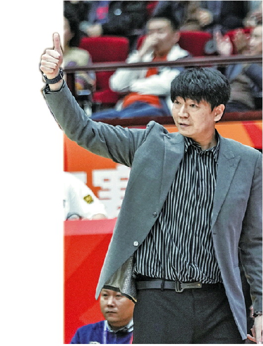 山东男篮主教练邱彪在比赛中鼓励球员。 新华社发