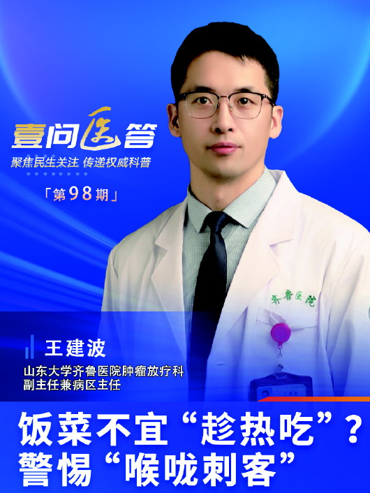 专家简介:王建波,山东大学齐鲁医院肿瘤放疗科副主任兼病区主任、主任医师、临床教授、博士生导师,主要开展食管癌的治疗抵抗及生物标志物研究。门诊时间:周一上午(专家门诊),周三下午(食管专病门诊)。