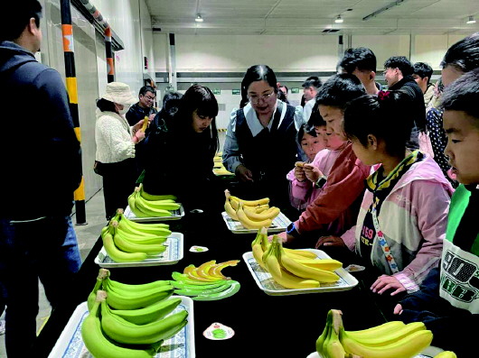 活动中,家家悦还特别准备了香蕉色卡,帮助消费者直观地了解香蕉的不同成熟度。从青绿色的未成熟香蕉到金黄色的完全成熟香蕉,消费者通过色卡对比,清晰地看到了香蕉成熟过程中的变化。此外,大家还品尝了不同成熟度的香蕉,亲身感受了从略带青涩到香甜软糯的口感变化。家家悦集团相关负责人表示,香蕉催熟库的自动化操作和精准控制技术,不仅提升了香蕉的品质和口感,也确保了催熟过程的安全性和可控性。未来,家家悦将继续致力于为消费者提供更优质、更安全的产品。