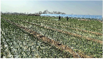 在水西村寿莱农业良种种植基地,工人们正在进行滴灌铺设,为即将到来的春灌做准备。基地负责人介绍,今年基地种植了优质小麦4000亩,目前小麦长势良好,预计亩产可达600公斤以上。