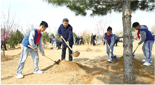 在京中共中央政治局委员、中央书记处书记、国务委员等参加植树活动。