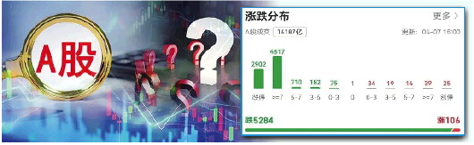 4月7日,A股遭遇“黑色星期一”,开盘后大幅下挫。截至收盘,上证指数收跌7.34%,失守3100点关口。深证成指收跌9.66%,创业板指收跌12.5%。沪深两市成交额约15878亿元,较前一个交易日放量约4502亿元。